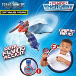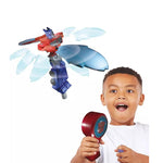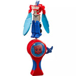 Make Optimus Prime fly fast, far and high! Grip the cord, rip the cord then watch him fly high up into the sky. Your favourite Transformers Optimus Prime is now a Flying Hero. The harder you pull the cord, the faster he will spin and the higher he will fly. Only you have the power to make him fly!