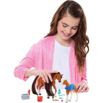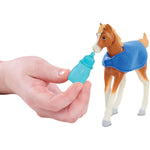 Mare Horse, 4" Foal Horse, Apple, Carrot, Bottle, Blanket, Brush, Curry Comb and Water Trough with Pump
