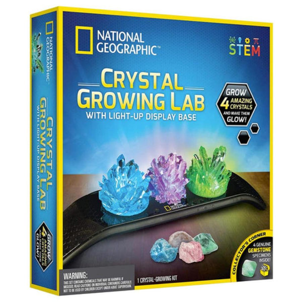The National Geographic Light Up Crystal Growing Kit gives you everything you need to grow three amazing crystals and display them on a sleek, stylish light-up base. Boys and girls will love this chemistry set, as they watch their fast-growing crystals form in as little as three days!