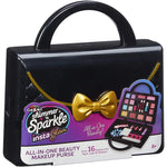 - Glam yourself, glam your world with the Shimmer and Sparkle All in one beauty Makeup Purse. The cosmetics set includes over 16 colours. Features: eyeshadow colours, lip colours, cheek colours, lip gloss, lipstick, nail polish, press on nails, nail stickers, nail file and toe separator, plus make up applicators and brushes