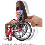 - Barbiedoll comes with a wheelchair that has rolling wheels and a working brake, plus a ramp that works with the BarbieDreamhouse (sold separately).
