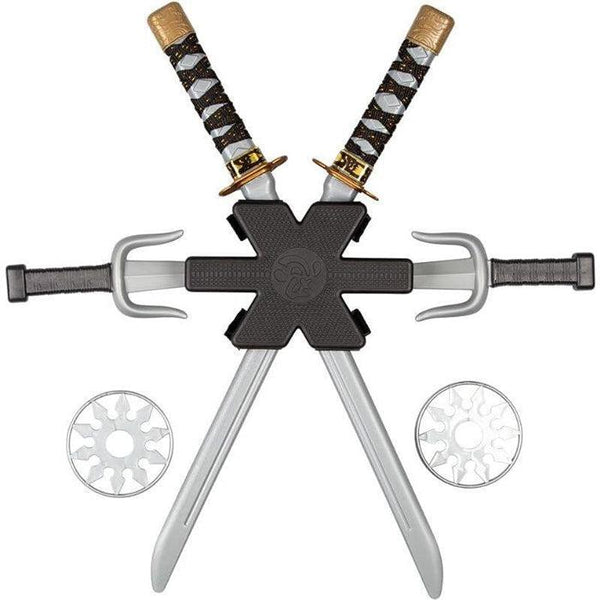 - Includes: Backpack with adjustable straps, 2 swords, 2 daggers & 2 spinners (7 pieces)