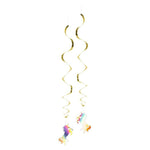 Decoration Swirls Size: 85cm Long Each, Shiny Swirl Decoration with Gold Unicorn and Holographic Shine