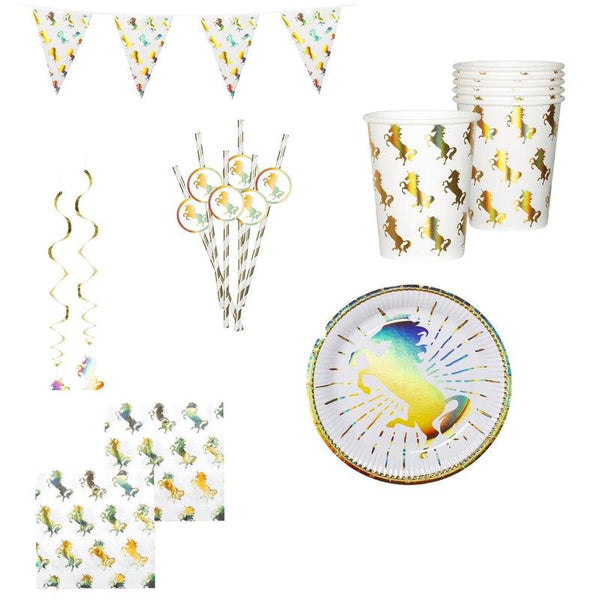 Unicorn Themed Party Accessories for Children or Themed Parties with Unicorn Design in Gold.