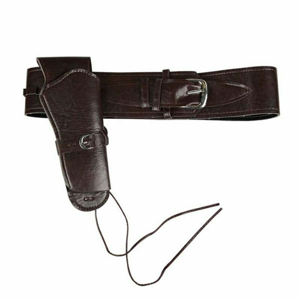 You'll draw lots of attention when you complete your cowboy, cowgirl, outlaw, gunslinger, sheriff and lots more fancy dress costumes with this deluxe gun holster. The authentic styled gun holder is attached to a brown faux leather belt with silver metal buckle. The holster has brown ties for securing around your leg for stability during your lightning fast draw.