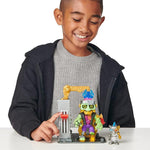 1 x Monster Character, 1 x Mad Scientist Character, 1 x Brain and Jar, 1 x Slime and Parts Jar, 1 x Robot Arm, 1 x Dissolvable Wrap, 1 x Operating Table + Alive Machine, 1 x Laboratory Workbench, 1 x Gold Treasure, 1 x Tools, 1 x Spider Web Material, 1 x Instruction Manual
