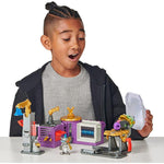 Discover secrets and surprises in the Mega Monster Lab and search through different ghoulish compounds in search of body parts and treasure! Open secret hatches to find spider web like compounds and mysterious jars full of ooze!