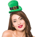 Description: Mini hat is attached to a headband green fabric leprechaun style hat. Ideal finishing touch for your costume