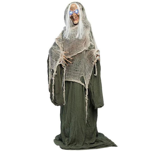 Description: This old witch has been waiting a long time to catch her next victim. So don't make too much noise or she will wake up and there will be no escape from her witchcraft. This frightning interactive standing decoration with creepy movements, sounds and glowing eyes is perfect as a decoration for Halloween or a haunted house.