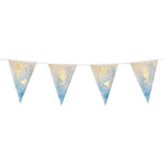 Bunting: Size: 4m Hanging Triangle Pennant Banner - White Banner with Holographic/Shiny/Rainbow Unicorn Pattern