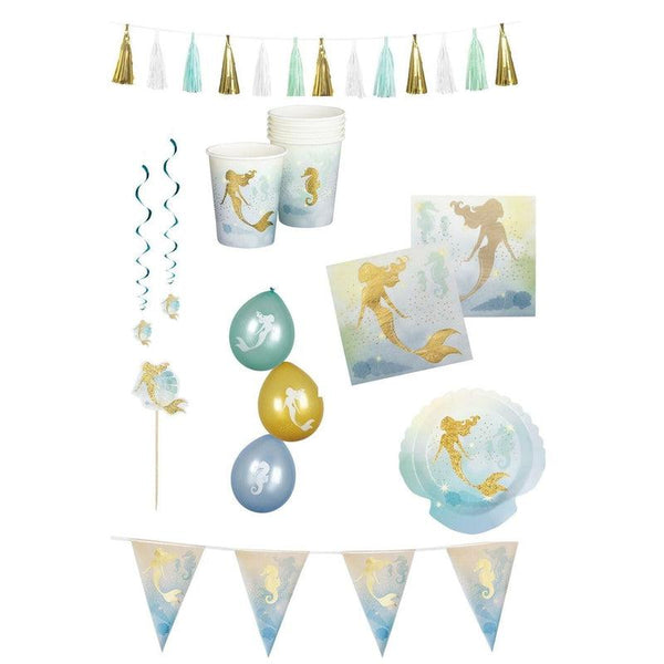 Mermaid Themed Party Accessories for Children or Themed Parties with Mermaid Design in Gold.