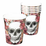 Set Of 6 Day Of The Dead 250ml Paper Cups Halloween Party Tableware