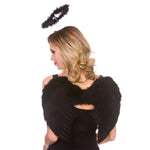 - Adult Feather Wings & Halo on Headband Set - Black