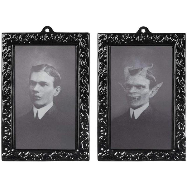 Are you having a horror party soon Then this portrait is perfect for hanging. If you move it or look at it from different angles, the portrait of a boy changes into a demon.
