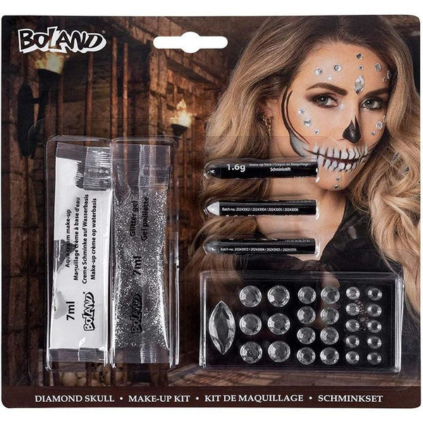 - The set includes three make-up pens - grey, black and white as well as 25 gemstones. The stones are self-adhesive, but can also be glued to the skin with a skin glue or mastic (not included)