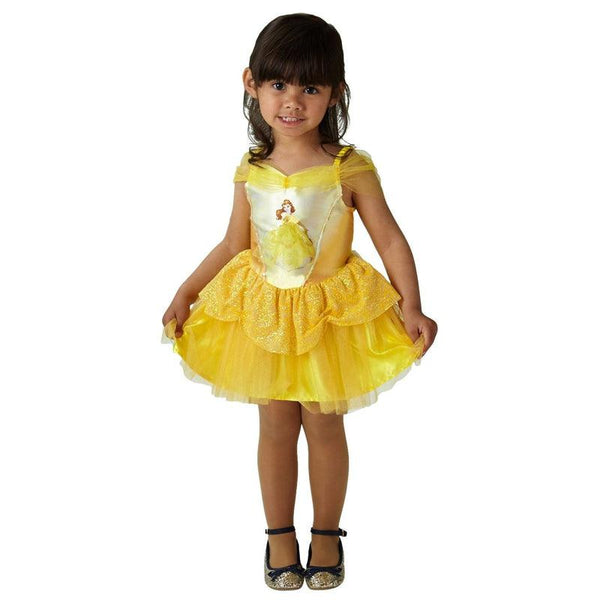 See how Belles Ballerina dress with its layered tutu and shimmering glitter peplum catch the light! A contrast to her full-length ball gown, the Beast will be smitten by the sprightly dazzling bodice that features a full-length 3D depiction of your favourite Disney Princess.