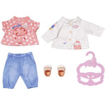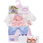 A lovely casual outfit, perfect for Baby Annabell Little 36cm dolls. Complete with polka dot T-Shirt and denim jeggings. The outfit also comes with a little white jacket and some pastel trainers to complete the look! Baby Annabell Little Play Outfit with T-Shirt, jacket, leggings, shoes and clothes hanger. For Baby Annabell Little 36cm dolls. For children aged 1+. Playing with dolls encourages children from the age of 1 to engage in nurturing role-play and provides initial stimuli for developing a sense of empathy and responsibility.