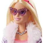 - the fur-lined metallic jacket and the bright blue high shoes give the princess outfit of the Barbie doll that certain something
