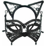 Black Lace Cat Mask & Ears Masquerade Ball Mask On Headband Fancy Dress