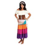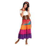 Ladies Gypsy costume set. This 3 piece set comes with headband, bracelets and belt. Decorated with small gold medallions it is the perfect accessory for any gypsy costume