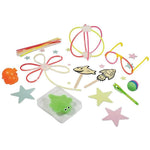- Contains 22 glow sticks and 13 connectors, UV pen with black light torch, bouncy ball mould and crystals, flashing LED capsule, glow slime powder, glow bug mould, 15 glow stars, notepad and much more