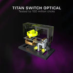 Faster than any mechanical switch, ROCCAT’s Titan Switch Optical with adjustable debounce provides a long-lasting 100 million click life cycle, and speed-of-light actuation for unprecedented speed and precision.