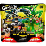 Now your favourite DC characters have joined the Heroes of Goo Jit Zu to become the ultimate squishiest, stretchiest and gooiest Heroes ever! Each DC Hero character has a unique goo filling with a different texture and feel. Prepare for the ultimate squishy battle as Metallic Batman versus The Riddler in this awesome Heroes of Goo Jit Zu Versus Pack! The Versus Pack contains one super gooey Exclusive Metallic Batman Goo Jit Zu figure with an amazing swirly ooze filling and one super squishy Exclusive Riddler Goo Jit Zu figure with an awesome green goo filling. Squeeze The Riddler's body and watch slime bulge out to reveal question marks inside of him! Battle them together like you have never seen before! Super durable, their stretchy bodies can stretch up to 3 times their size and then return to their original shape and size! Discover a new way to play and save the day with these cool collectible toys!