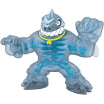 The Heroes of Goo Jit Zu Dino X-Ray "Fossil Faceoff" Versus Pack contains 2 Exclusive Goo Jit Zu Action Figures so they can fight each other! Who will come out on top when Thrash (the Megalodon) takes on Verapz (the Velociraptor) in the ultimate squishy battle! Each Versus Pack contains squishy figures with special finishes only available in these packs! Every character has a unique goo filling with a different texture and feel. Thrash is Super Squishy. With his Dino X-Ray powers, he dives into battle headfirst for some bone busting action! Squeeze his squishy body to see his bones through his stretchy skin! Verapz is Super Stretchy! He's fast, furious and flexible. He can defeat his opponents with his "Chomp Attack" feature! Press down on his head to open-up his powerful jaws! Who has the "Power Attack" to smash their enemy Are Thrash's Bones powerful enough to withstand Verapz "Chomp Attack" These toys stretch up to three times their size and are more durable than ever before! Stretch and squish your Goo Jit Zu Heroes and they will always come back to their original shape! The Heroes of Goo Jit Zu action figures are like no other! Also available and sold separately is the Stone Age Rampage Versus Pack featuring Tritops Vs Shredz. Collect both packs for the ultimate Dino X-Ray Rumble!