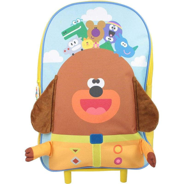 Description: Hey Duggee wheeled bag featuring character front. Ideal for kids who love Hey Duggee. This wheeled bag is easy to pull and ideal for weekends away.