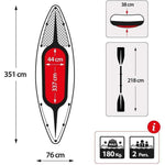 Including a handy repair set, 2 aluminium paddles, an inflatable pump