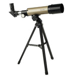 This durable, lightweight telescope allows young scientists to explore the natural wonders of the earth, moon and beyond. The 50mm achromatic objective lens and rack and pinion focusing deliver clear, up-close images at magnifications from 20x to 80x. Tabletop tripod makes exploring on-the-go easy. Includes two interchangeable eyepieces and an image erector for viewing terrestrial subjects.