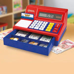 - CASH REGISTER TOY FOR KIDS: Lets play shop! Use this pretend play toy till for kids with solar-powered calculator for educational play; Kids can lean to add