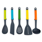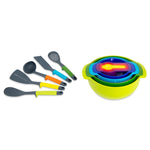 - 5 x Measuring Cups, Medium Mixing Bowl, Mesh Sieve, Colander/Strainer, Large Mixing Bowl, Solid Spoon, Ladle, Slotted Turner, Flexible Turner and Slotted Spoon