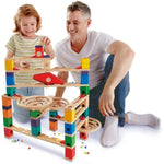 The Quadrilla Vertigo is one of several types of marble runs in the Quadrilla line. There are endless possibilities for 3-D thinking and engineering development. Hape's Quadrilla Marble Runs help children to develop spatial and reasoning abilities, and has even been highlighted as a developmental tool for computer programming by The Wall Street Journal. Designed to engage kids in early Stem development, the Quadrilla system encourages problem-solving and keeps little engineers coming back for more fun!