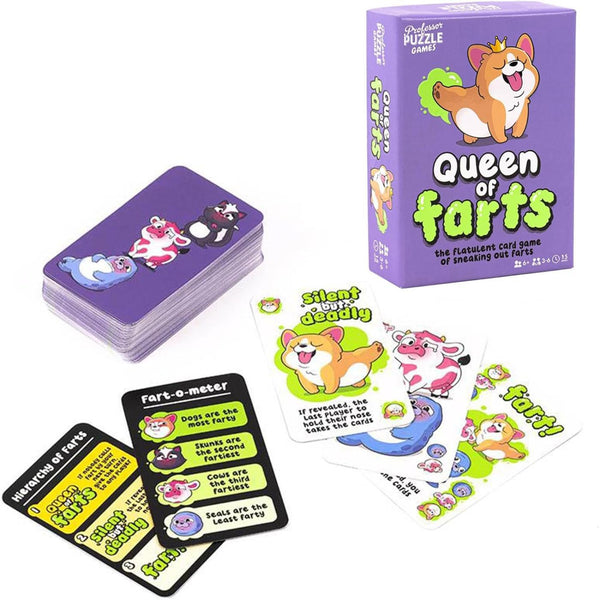 Sneak out a fart without the other players catching wind in this hilarious game of gas! Just play a matching animal to get rid of your cards, but beware! Some are much fartier than others. If someone smells a fart and it turns out to be you, it could cause a real stink. Will you be crowned Queen of Farts or will you be left with a bad taste in your mouth?