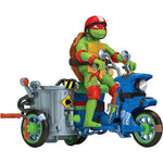 When one Turtle isn't enough to handle Super Fly and his minions of baddies, the Turtles call on Raph and one of his brothers to go into action and take care of the trouble. They’ve taken their friend April's scooter and modified it into a Battle Cycle with a transforming side car, so any of the four brothers can ride along and fight.