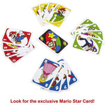 The 112-card deck includes a Super Mario Super Star rule unique to this game. The player that draws the Super Star card becomes practically invincible! When players are down to one card, they must yell "UNO!"