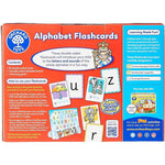 Features a double-sided card for each letter of the alphabet, featuring a letter on one side and a word and colourful picture on the other.