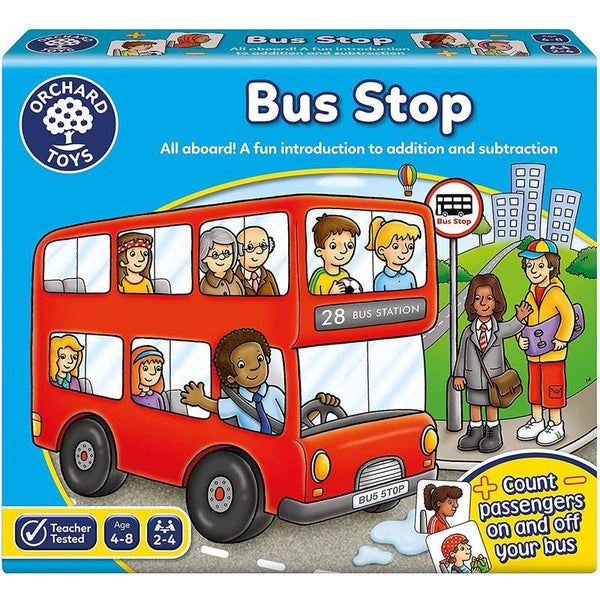 Bus Stop is an Orchard Toys classic and has been a top 10 favourite for many years. Children will develop their adding and subtracting skills and have fun talking about the interesting characters and places the bus stops along the way!