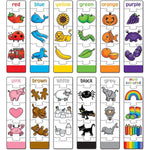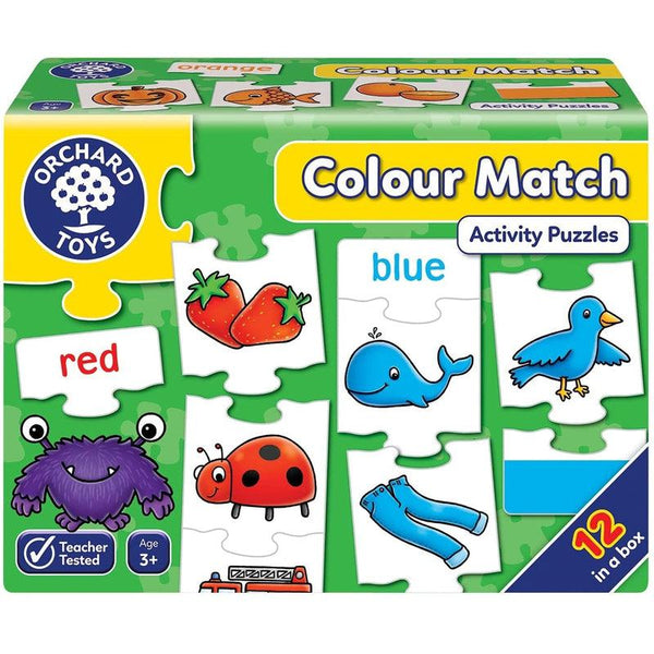 An activity based jigsaw, which encourages children to identify colours by relating them to familiar objects. Colours and pictures can be pieced together to make colour themed, 5-piece jigsaws where only the correct cards will fit together! Children will love looking at the friendly and colourful characters, ranging from purple monsters to grey elephants.