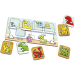 Dirty Dinos is a dinosaur-themed game of chance where players race to fill their bathtub with clean dinosaurs. Players match friendly dinosaurs by type and colour using the double spinner. If they find the correct dinosaur they can add it to their bathtub! As they play children will develop matching and memory skills and number and counting skills.