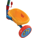 The easy switch front wheel clutch mechanism allows kids to rest their feet on the pedals in parent push-along mode, whilst using the adjustable parent handle. The handle can be removed and pedals engaged once your child is ready to go it alone, improving confidence and coordination. This trike can be adjusted to growing children with the adjustable handlebar height of 50-53cm and a seat height of 32cm. The removable rear bucket is great for ride-along storage for all your favourites toys!