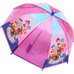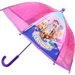 Description: This is a colourful, fun plastic Paw Patrol Rain Umbrella. This brolly is perfect for the Autumn and Winter walks to Preschool, Nursery or School. The mini dome umbrella is predominantly purple, with 4 opaque coloured plastic panels, and 4 pictures plastic panels featuring your favourite friends from Paw Patrol, including: Chase, Rubble, Marshall, Skye & Everest. They are posing on the picture with the phrase "playtime"