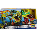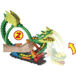 Description: Watch out! A vicious dragon named Dante is attacking the Hot Wheels City fire station! Dante 'comes alive' and knocks down the fire station where it devours any unsuspecting vehicle in its way. The car flies through its body where kids then use their ultimate stunting skills to launch at the dragon's head to knock it out.