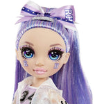 Violet Willow got a cheerleading makeover in a gorgeous purple cheer outfit that reflects her glam, diva style. She has gorgeous features, long eyelashes and beautiful, brushable hair in a ponytail. Her hair also features a cheerleader bow and barrette. She's fully articulated and posable. Her arms and legs bend, so she can strike loads of glamorous cheer poses. Violet also comes with pom poms, so she can cheer on Rainbow High in style. Also includes hair comb.