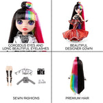Stunning extra long brushable hair with amazing black & rainbow effect.