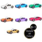 8-in-1 Colour Changing Car - just press the badge at the front of the car to select your colour. Starts white, and then choose any colour in the rainbow- red, orange, yellow, green, blue or purple or cycle through all of them for a really amazing effect!