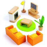 - Beautifully crafted living room that fits into Hape's All Season Doll's House or any 1" scale play house