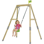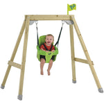 The best-selling growable single Acorn swing frame comes complete with 2 seats for children aged 6 months to 10 years, so the swing frame truly grows with your child. This Acorn set includes a foldaway swing seat for children aged 6 months to 3 years. Supplied with extensions, this seat can be used when the frame is built at both low and full height. A roomy seat suitable for children aged 3 -10 years is also included in the set and is suitable for use at full height only. Buy with confidence- TP Timber is cut, air dried, planed and kiln dried before being pressure treated with an preservative (Osmose or Tanalith E) which penetrates deep into the wood, right into its centre, rather than simply being applied to the surface, so our performance guarantees do not rely upon the annual application of a stain to the surface of the wood. Age: 6 months 10 years. 6 months - 3 years at low height, 6 months - 10 years at full height, depending on seat selected.
