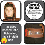 - Includes hooded cloak, belt, braid and lightsaber